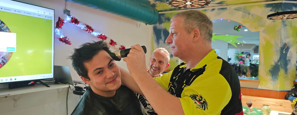 Gerald Aigner zeigte, dass er nicht nur für unsere Speisen der Topmann ist, sondern auch als Friseur überzeugen kann – ein klarer Beweis, dass der Wirtschaft ein Talent verloren gegangen ist.